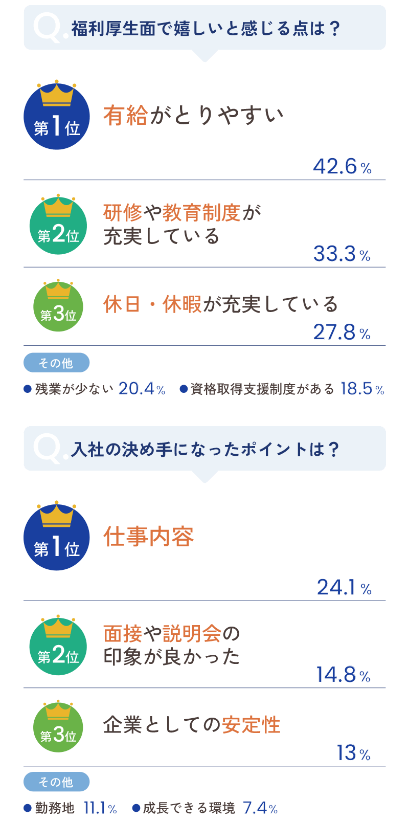 実際に働く人の声や働く魅力、特別な研修などについて詳しく紹介しています。